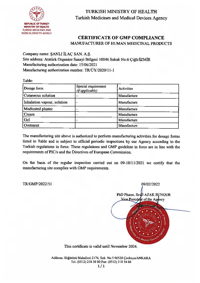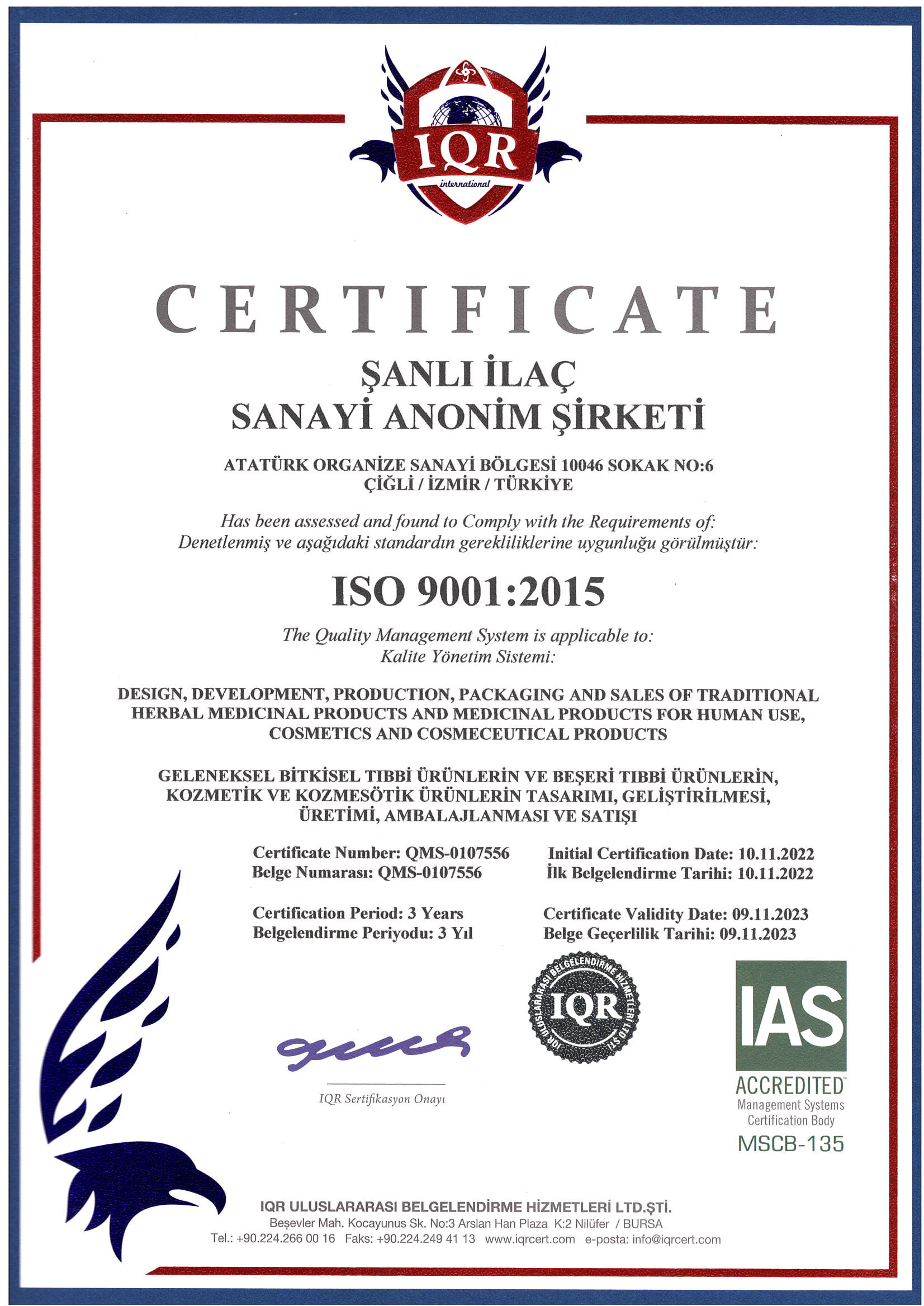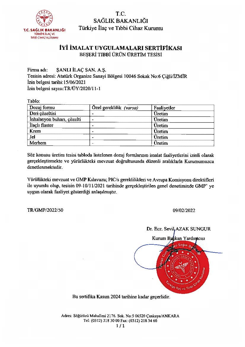 Şirketimiz 1966 yılından beri piyasada lider konumundaki, halka mal olmuş “ŞANLI DELİKLİ YAKISI – KAPSİKUMLU “ adlı ürününü ve bu gruptaki diğer ürünlerine ağırlık vermiştir. Bu konuda yeni ürün araştırma ve geliştirmesine yönelmiştir. Beş bölge müdürlüğü ile ülkemizin her noktasında hizmet vermektedir. Tüm ürünlerimiz halk sağlığına en iyi hizmeti vermek amacıyla Sağlık Bakanlığı Mevzuatı çerçevesinde GMP kurallarına uygun olarak üretilmektedir. Firmamız akredite sertifikalı ISO 9001:2015 Kalite Yönetim Sistemi ve ISO 13485:2016 Tıbbi Cihazlar Kalite Yönetim Sistemi belgelerine sahiptir.